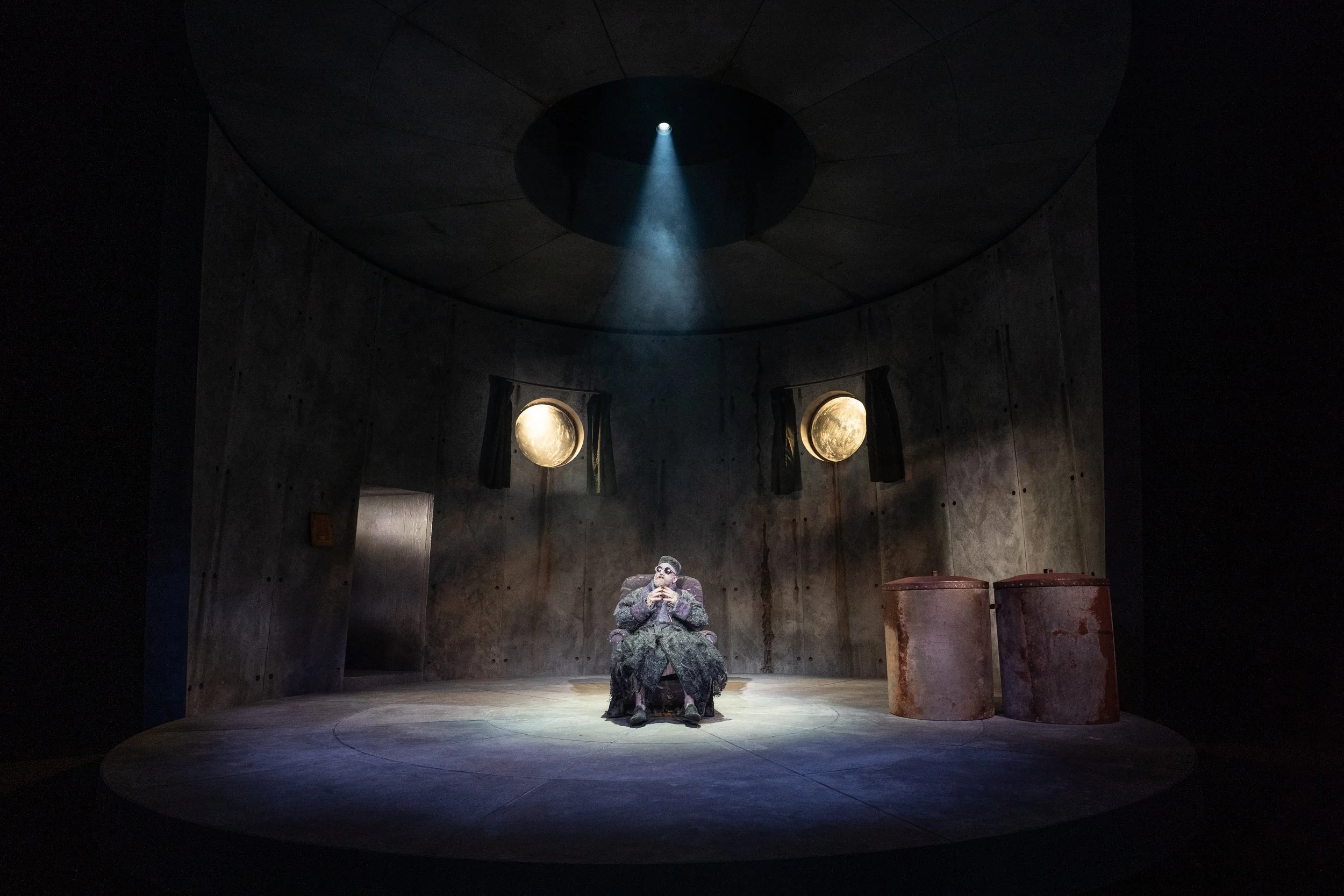 The evening announces its intentions from the very first vibrations—those subterranean, almost tectonic murmurs of Gregory Clarke’s sound design, which seem less like cues than auguries. They do not merely set the mood; they foretell it, as if the theater itself were bracing for an incursion of dread. Francis O’Connor’s set, a bowed concrete bunker whose curvature suggests both containment and collapse, amplifies this sense of impending ruin. Its circular deck and two unreachable, curtained windows evoke an architecture designed not for habitation but for exile. At the precise center lies a drain—an inscrutable aperture that intimates unsavory histories and more than a few unspeakable functions. One feels it might swallow whatever hope wanders too close.